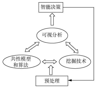 如图1所示,在一个典型的大数据分析与应用流程中,数据经过预处理后,采用以大数据统计为代表的共性模型和算法与大数据挖掘技术进行计算分析,再结合高度智能灵活的可视分析,最后支持复杂场景下的智能决策。分析的结果将进一步反馈到数据处理,并再次进入分析过程,进一步提供基于数据的洞见能力和决策支持。可见,在大数据分析与应用中,大数据预处理与质量控制技术、大数据分析支撑理论与算法、大数据挖掘技术、大数据可视分析技术、大数据智能知识管理与决策支持技术构成了大数据分析与应用的五大共性技术。这五大共性技术也是构建大数据分析与应用技术创新平台的关键环节。